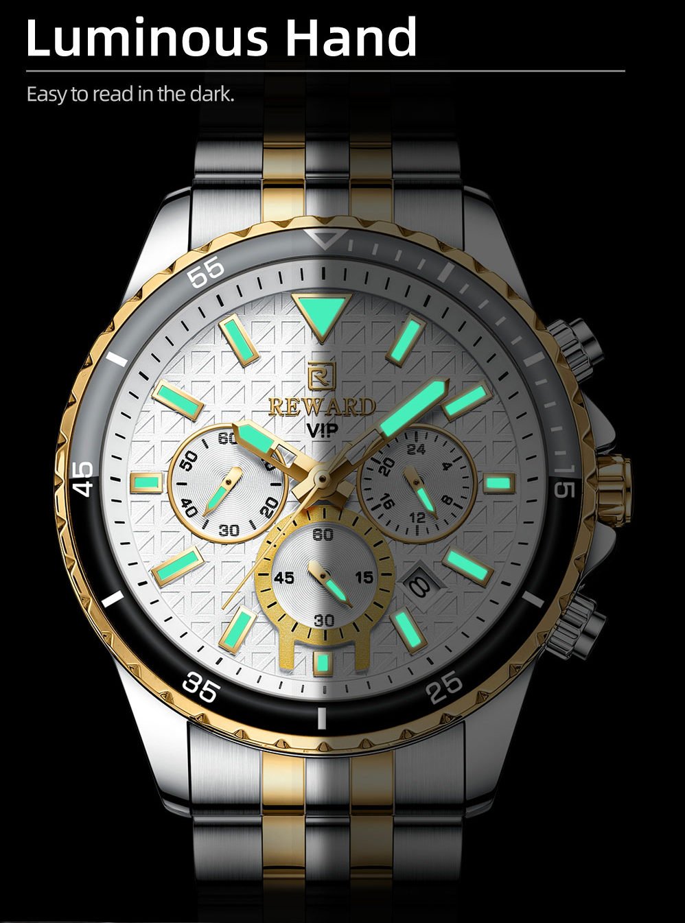 REWARD en acier inoxydable, décontractée, à la mode, avec calendrier lumineux