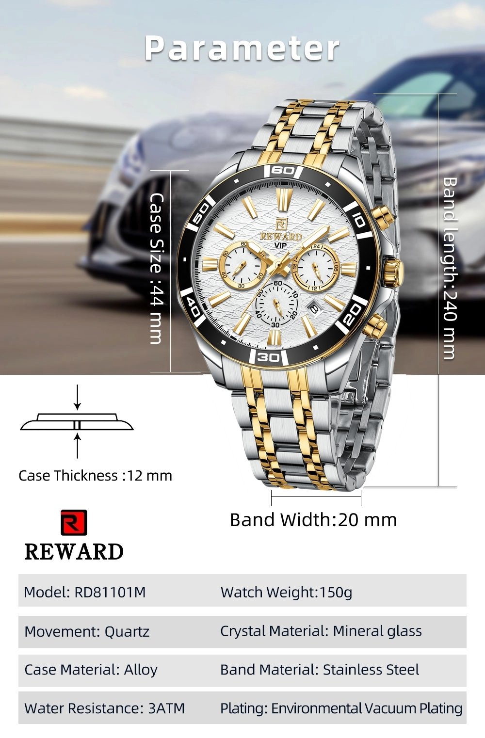 | REWARD en acier inoxydable, décontractée, à la mode, avec calendrier lumineux | 1 36000 F |