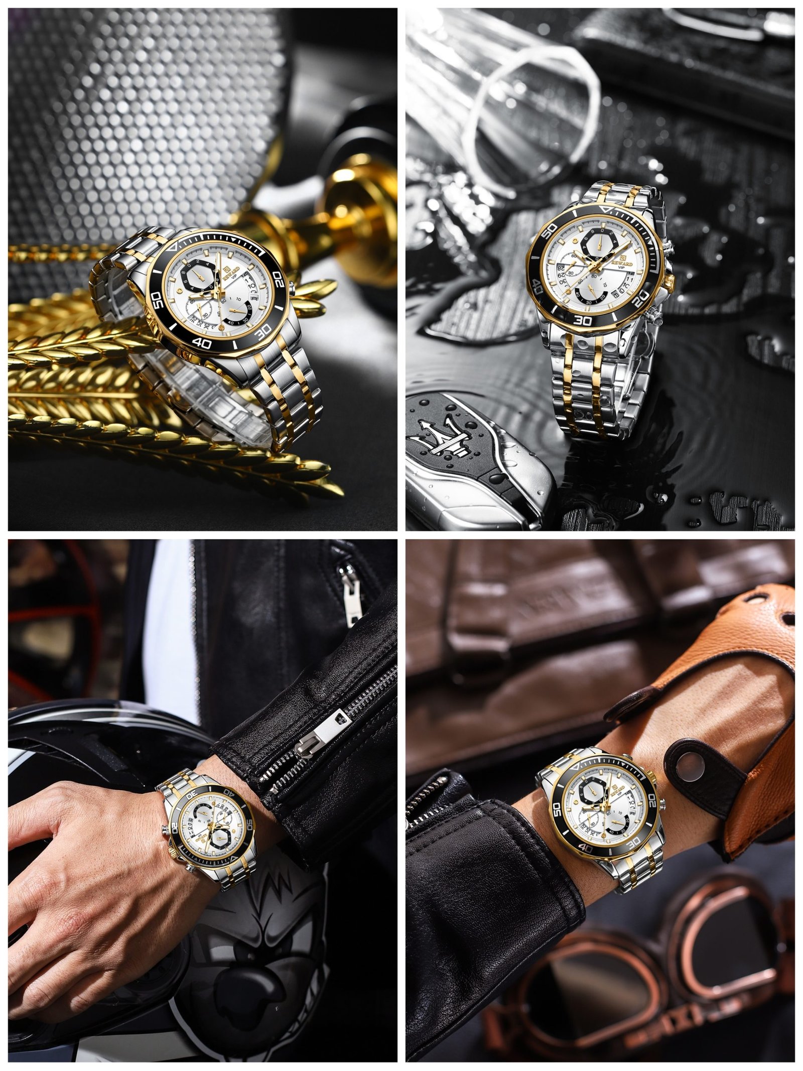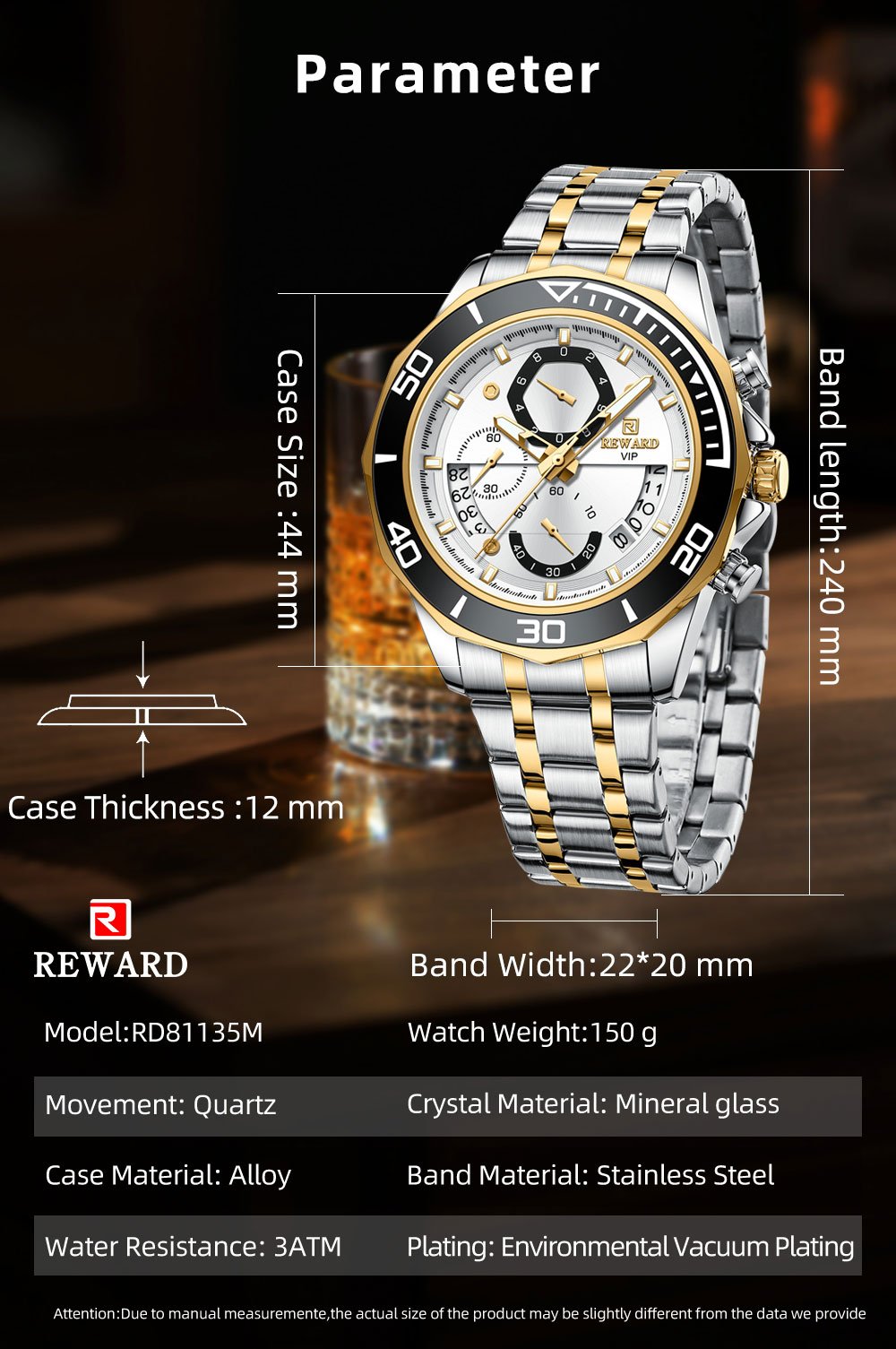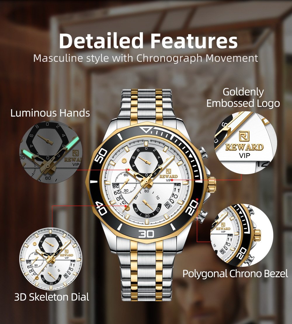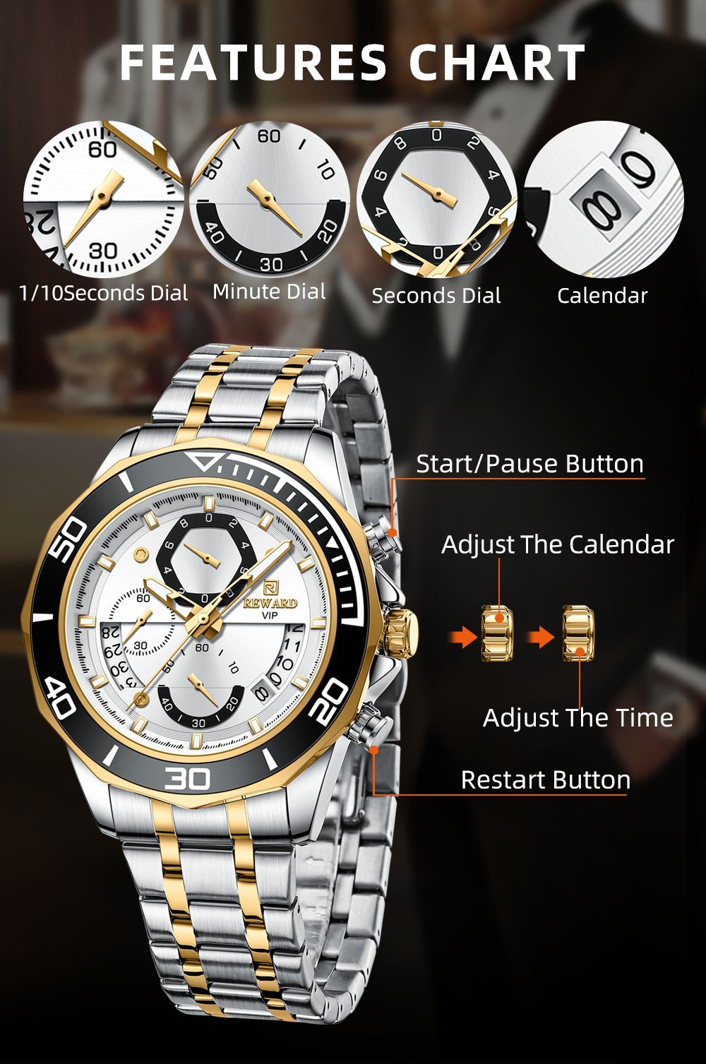 | REWARD, étanche, lumineux, chronographe, calendrier, à Quartz |