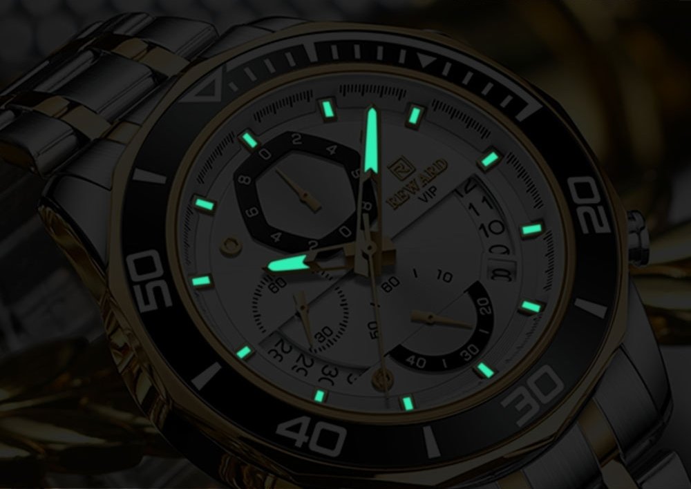 REWARD, étanche, lumineux, chronographe, calendrier, à Quartz